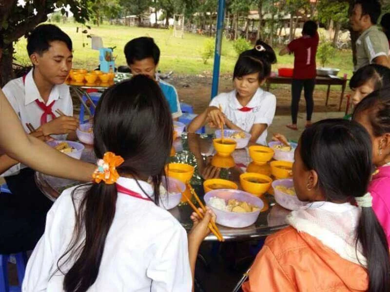 Bữa ăn có canh của các em học sinh Trường THCS Bế Văn Đàn. Ảnh: Facebook Khỏe Tám
