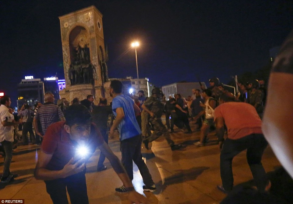 Máy bay chiến đấu F-16 xuất hiện trên bầu trời Ankara. Có thông tin cho rằng F-16 thuộc phe chính phủ và đã bắn hạ một trực thăng quân đảo chính.