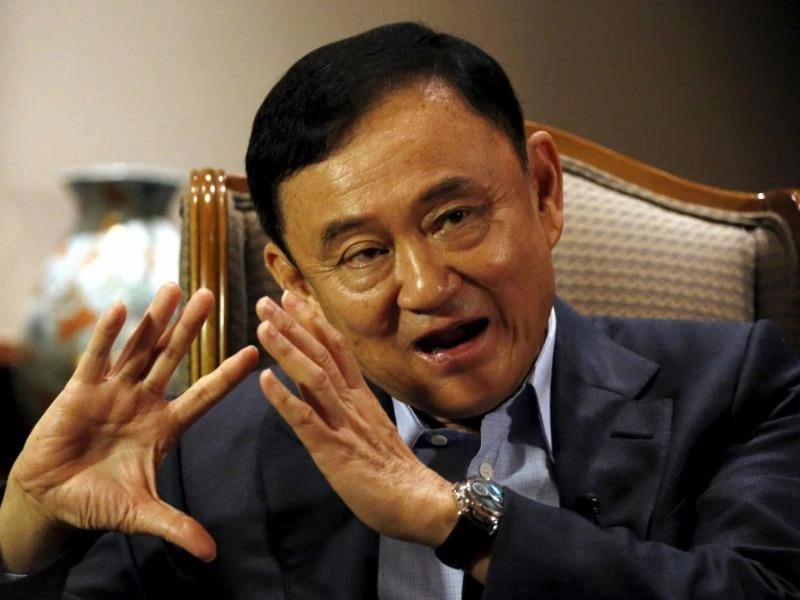 Cựu Thủ tướng Thái Lan Thaksin Shinawatra trong một cuộc phỏng vấn ở Singapore hồi tháng 2-2016. Ảnh: REUTERS
