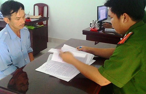 Hồ Thanh Lâm tại cơ quan công an. Ảnh: GT
