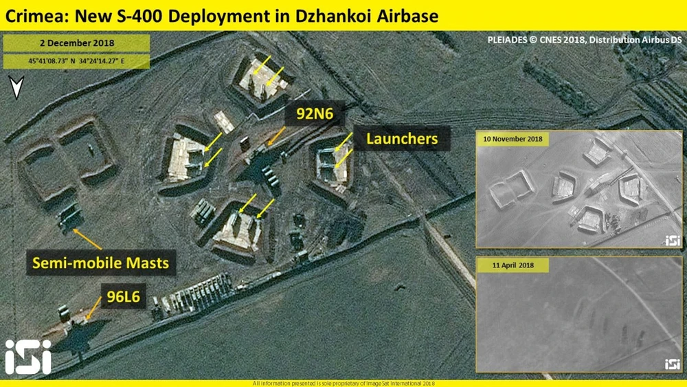 Báo cáo của công ty tình báo ảnh vệ tinh ImageSat International cho thấy cơ sở hạ tầng để triển khai hệ thống S-400 đã được chuẩn bị từ vài tháng gần đây nhưng trước khi xảy ra vụ đụng độ hải quân giữa Nga và Ukraine hôm 25-11 một khoảng thời gian.