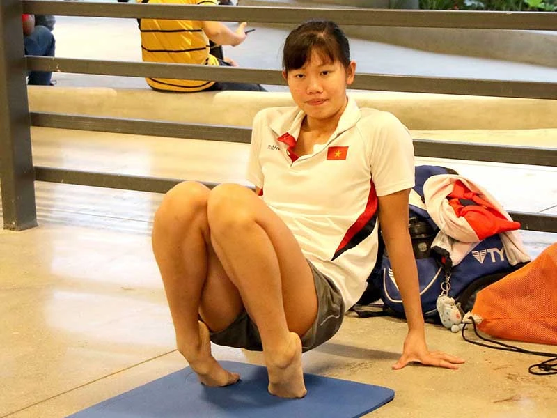 Ánh Viên tự tin trong buổi tập ngày 3-12 trước khi nhận lãnh trọng trách chính của người chinh phục vàng ngày 4-12 cho đoàn thể thao Việt Nam. Ảnh: CMQ