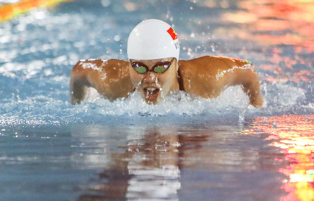 Thế nhưng khi xuống nước, kình ngư 17 tuổi chỉ cán đích sau Ánh Viên 73% giây nhận HCB. Với thành tích 57”26, Ánh Viên giành HCV, phá kỷ lục đại hội 57”85 nhưng thông số còn kém xa kỷ lục quốc gia của chính mình là 55”76.