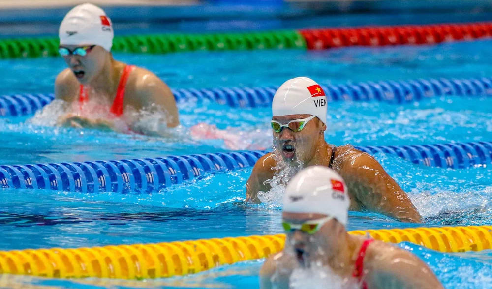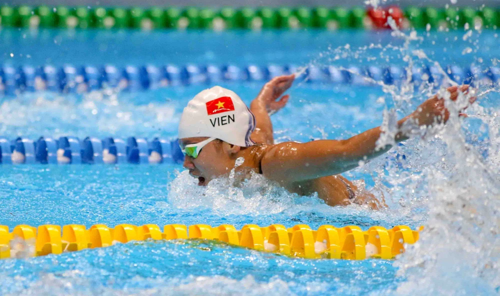 Ánh Viên thi đấu chung kết 400 m hỗn hợp. ẢNH: PHẠM HUY