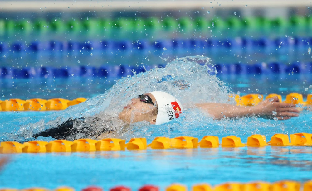 Kình ngư Việt Nam xuất sắc giành quyền dự tranh hai cự ly chung kết 200 m ngửa và 400 m tự do nữ. ẢNH: PHẠM HUY