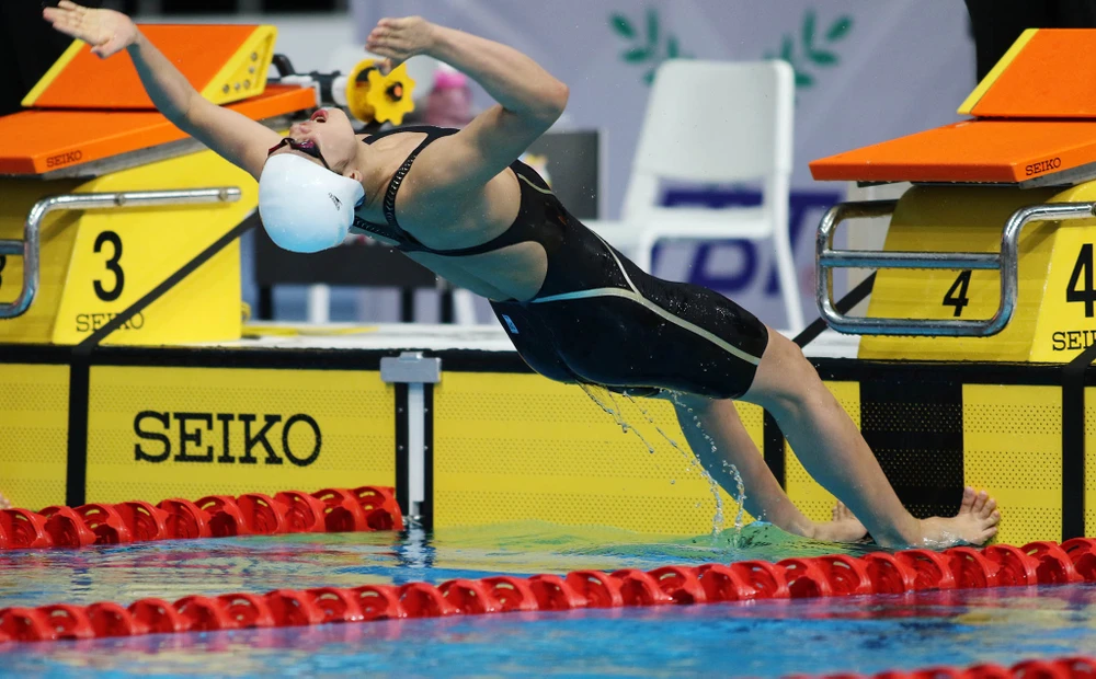 Ánh Viên xuất phát cự ly 200 m ngửa. ẢNH: PHẠM HUY