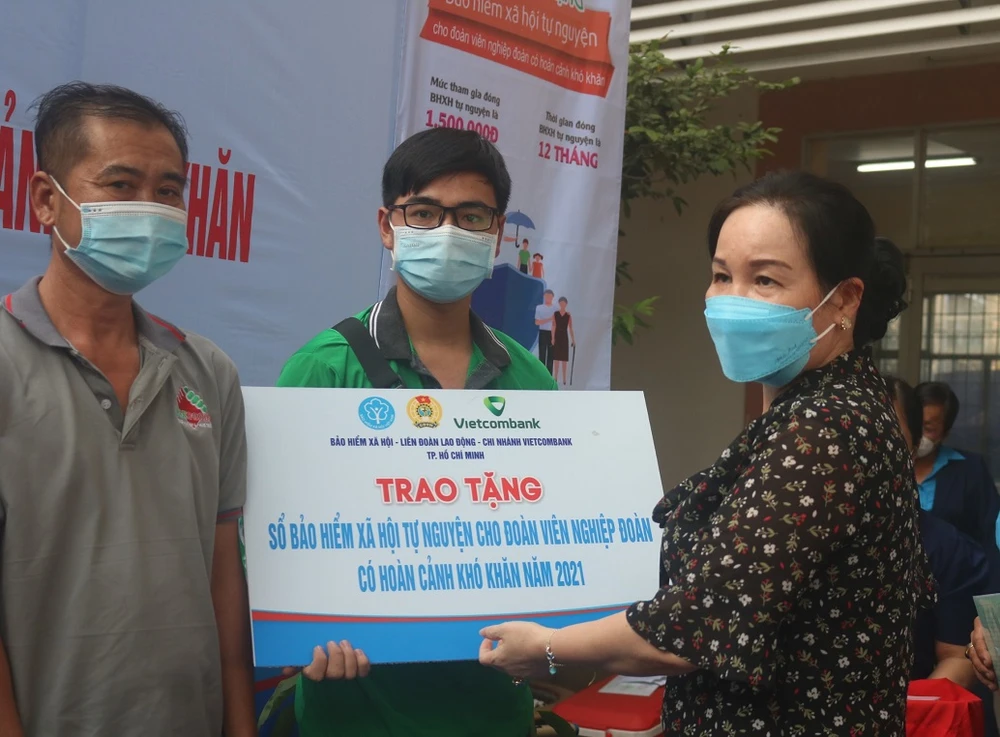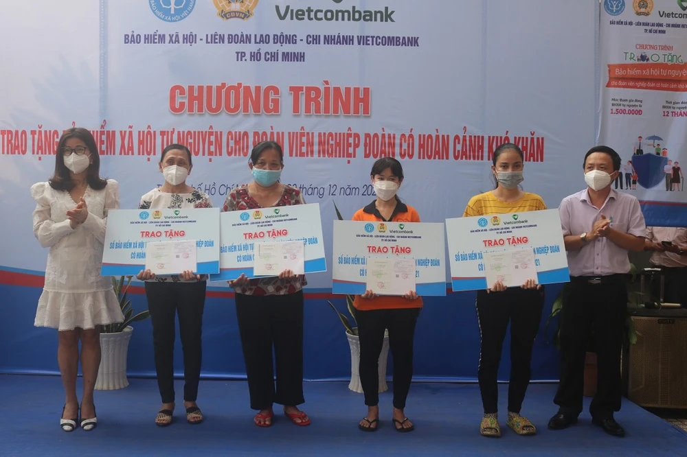 Hoạt động này nằm trong chương trình trao tặng BHXH tự nguyện cho 500 đoàn viên nghiệp đoàn có hoàn cảnh khó khăn do Liên đoàn Lao động TP.HCM, BHXH TP.HCM và Ngân hàng Vietcombank tổ chức.