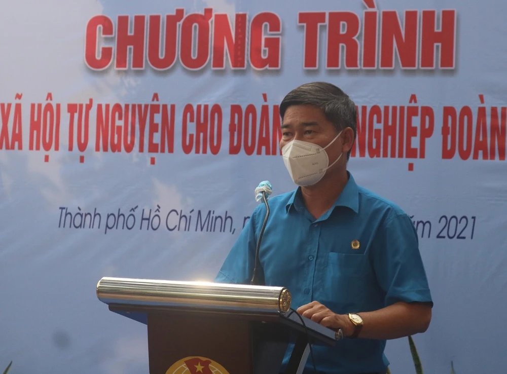 Ông Phạm Chí Tâm - Phó Chủ tịch Liên đoàn Lao động TP.HCM phát biểu tại chương trình. Ảnh: KHÁNH CHI