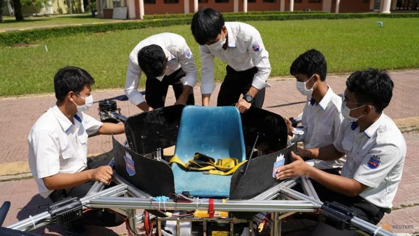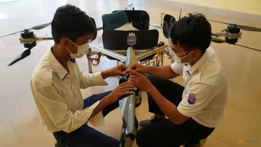 Ảnh:Sinh viên Campuchia thiết kế máy bay không người lái kiêm taxi, lính cứu hỏa. Ảnh: REUTERS
