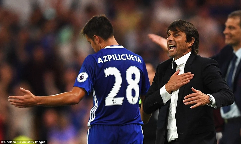 César Azpilicueta đang được hướng dẫn từ Conte.