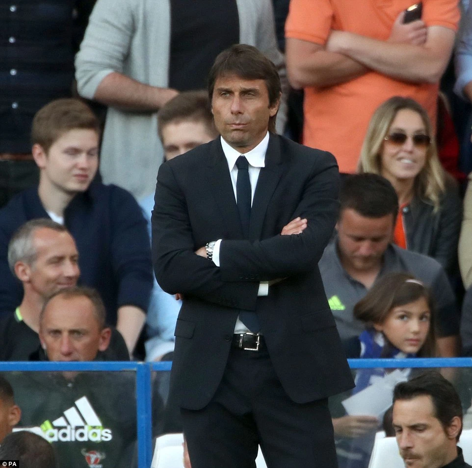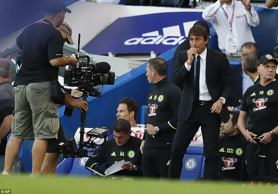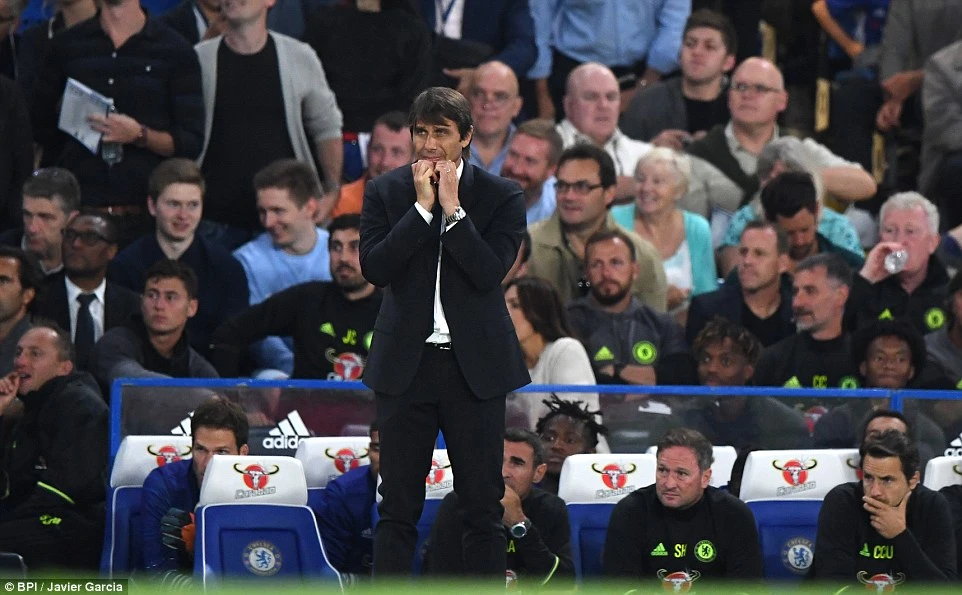 10 phút đầu trận, trước sức ép của đội khách, Conte khá căng thẳng.