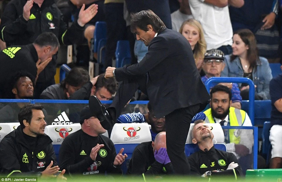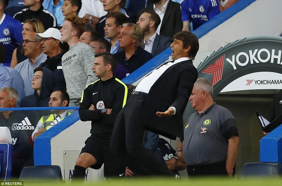 Conte phản ứng khá gay gắt trước quyết định của trọng tài khi Oscar ngã trong vòng cấm mà "The Blues" không được hưởng phạt đền.