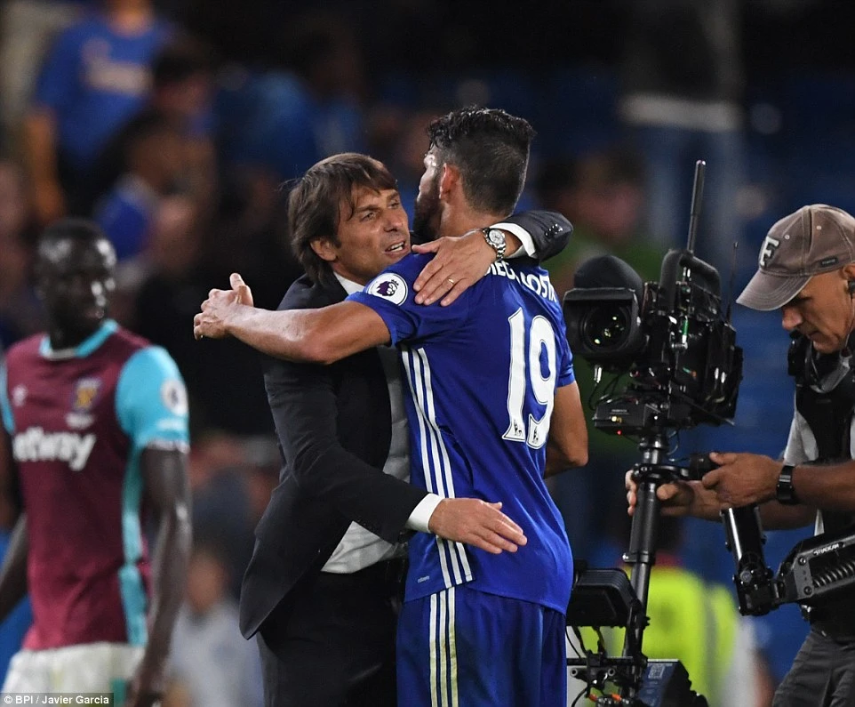 Vỡ òa cảm xúc sau bàn thắng "vàng" của Diego Costa ở phút cuối trận.