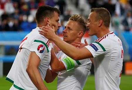 Hungary: Király; Fiola, Guzmics, Lang, Kádár; Gera, Nagy; Németh, Kleinheisler, Dzsudzsák; Szalai.