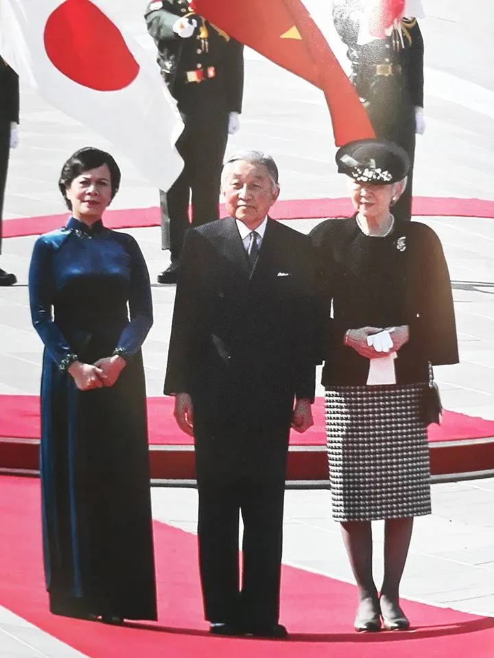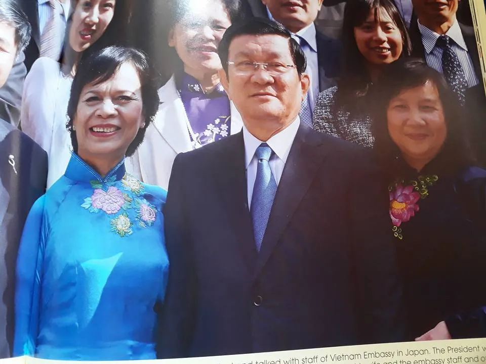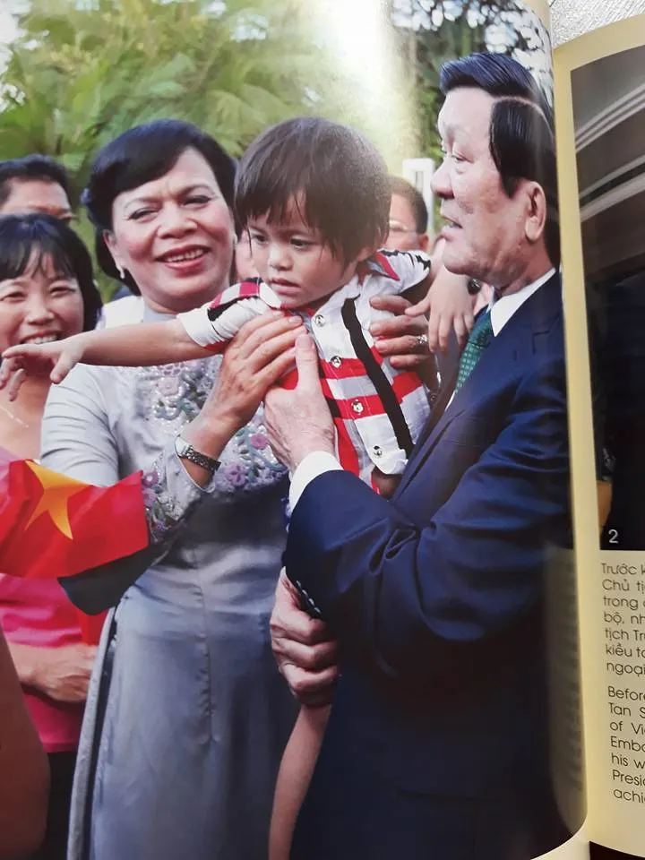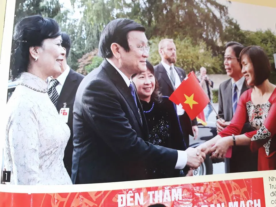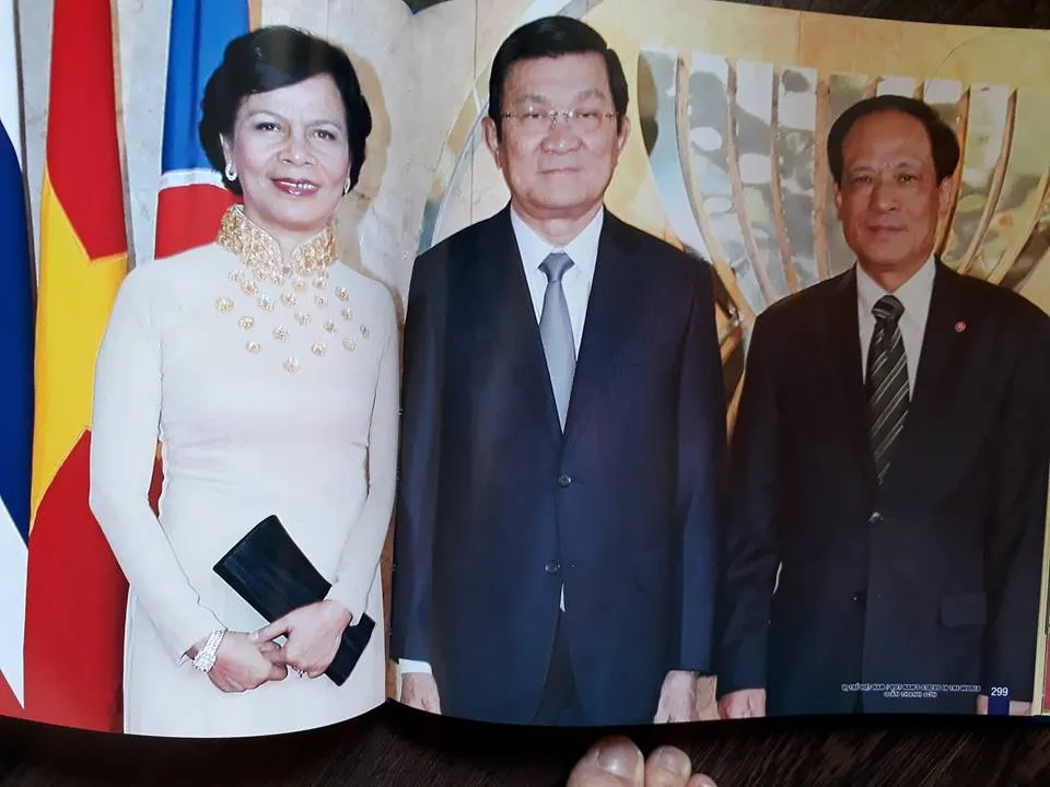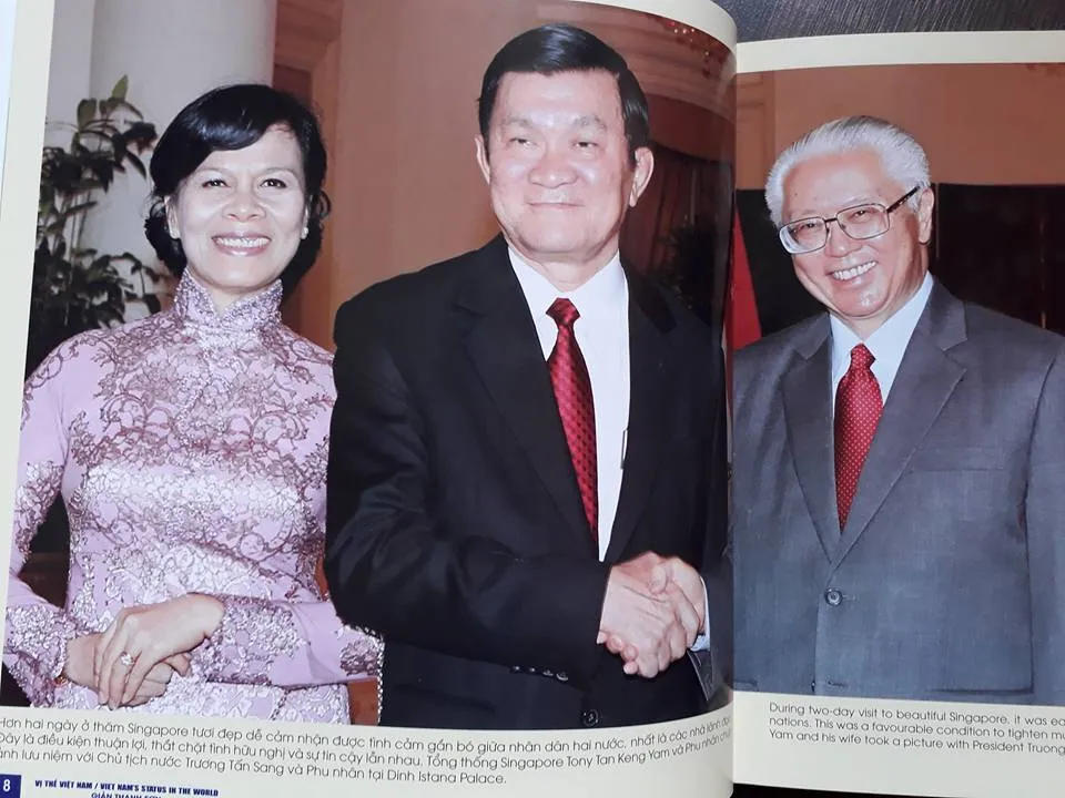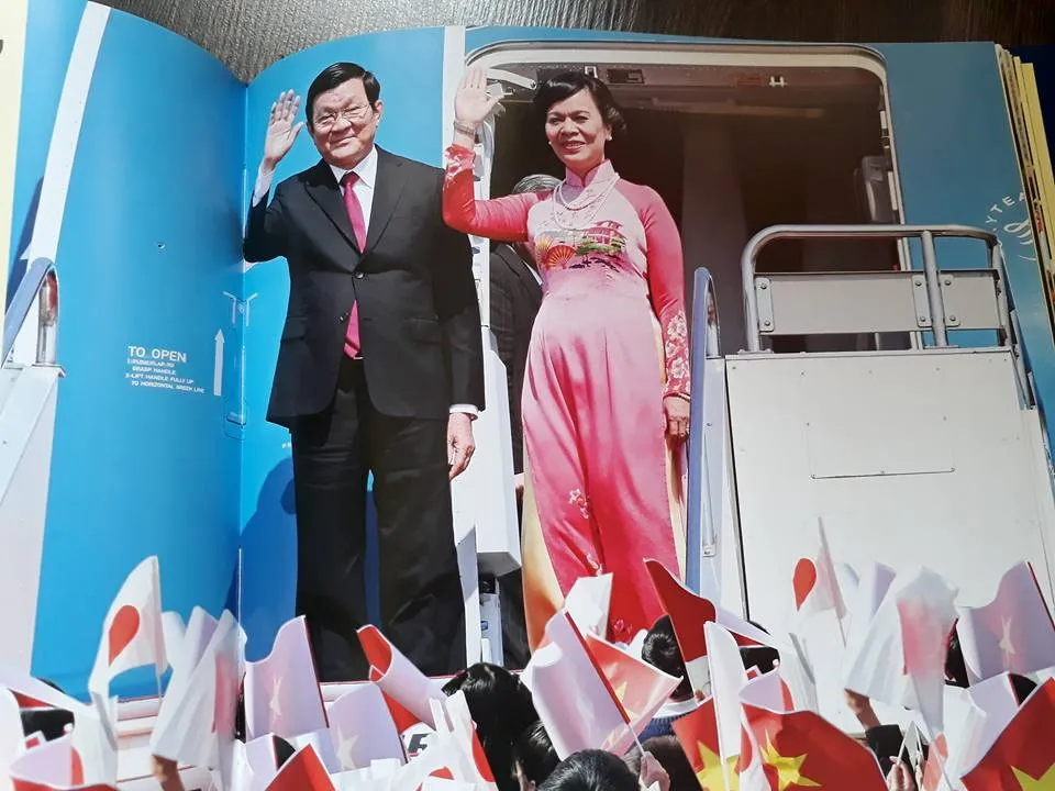 Giữa “rừng” hình ảnh các vị nguyên thủ quốc gia, các nhà ngoại giao hiện diện trong quyển sách, hình ảnh phu nhân nguyên Chủ tịch nước Trương Tấn Sang xuất hiện rất thường xuyên và để lại ấn tượng tốt đẹp trong những tà áo dài nền nã, thanh lịch.