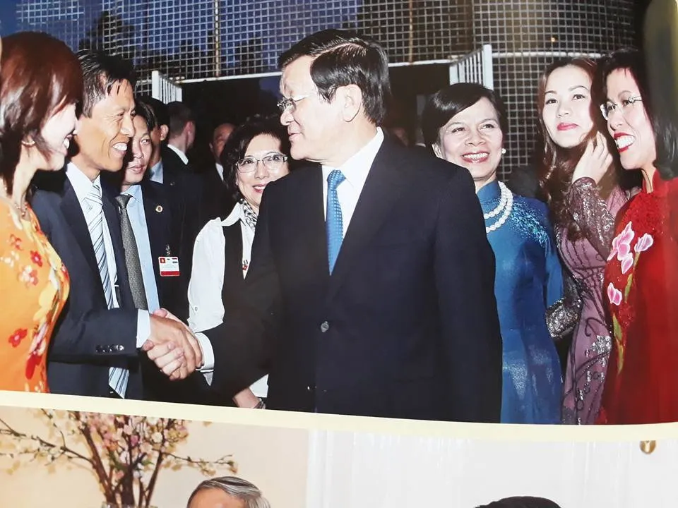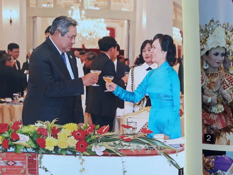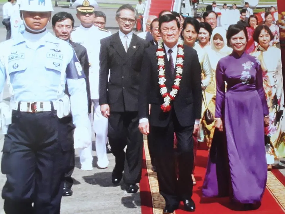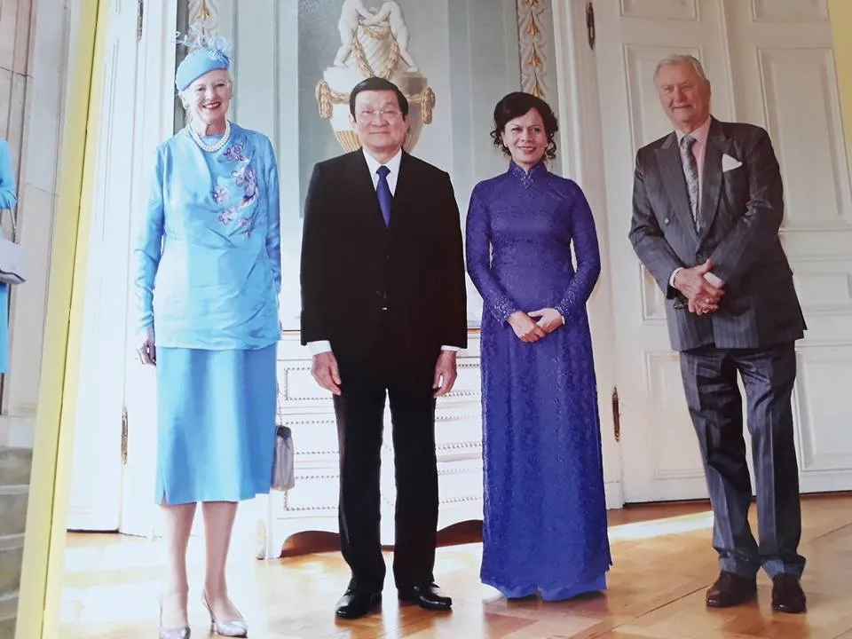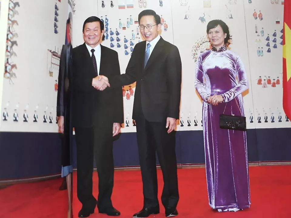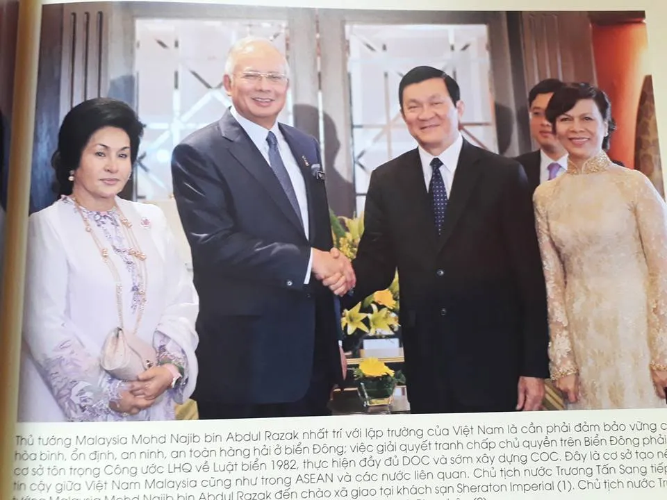 Giữa “rừng” hình ảnh các vị nguyên thủ quốc gia, các nhà ngoại giao hiện diện trong quyển sách, hình ảnh phu nhân nguyên Chủ tịch nước Trương Tấn Sang xuất hiện rất thường xuyên và để lại ấn tượng tốt đẹp trong những tà áo dài nền nã, thanh lịch.