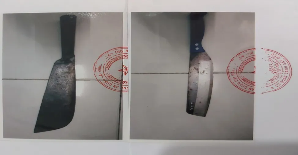 Hai con dao tang vật Triết dùng để chém người. Ảnh: VKSND quận Cái Răng
