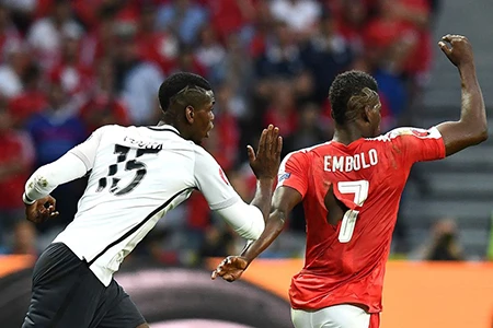 Áo Breel Embolo đã tan ra từng mảnh sau khi "đụng độ" với Paul Pogba.