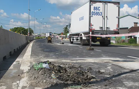 | “Hư hỏng có lỗi của xe quá tải” Dự án mở rộng, nâng cấp hơn 1.410 km quốc lộ 1 vượt tiến độ 12 tháng. Theo Bộ GTVT, công tác quản lý chất lượng dự án được kiểm soát chặt song hằn lún vệt bánh xe hay ổ gà vẫn xảy ra ở một số đoạn. Tỉ lệ hư hỏng chiếm 1,9% diện tích của dự án, giảm bốn đến năm lần so với trước. Bộ GTVT lập “tổ đặc nhiệm” do một thứ trưởng làm tổ trưởng để rà soát, tìm nguyên nhân và đề ra giải pháp khắc phục hư hỏng. Trong báo cáo gửi Thủ tướng mới đây, Bộ GTVT nêu nguyên nhân hư hỏng chủ yếu là do sai sót cục bộ trong kiểm soát chất lượng thi công không đồng đều và một phần là xe quá tải. |
