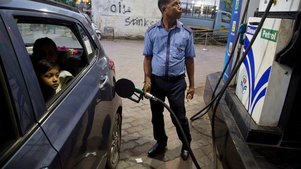 Một xe hơi đổ xăng tại một trạm xăng ở Ấn Độ. Ảnh: AP