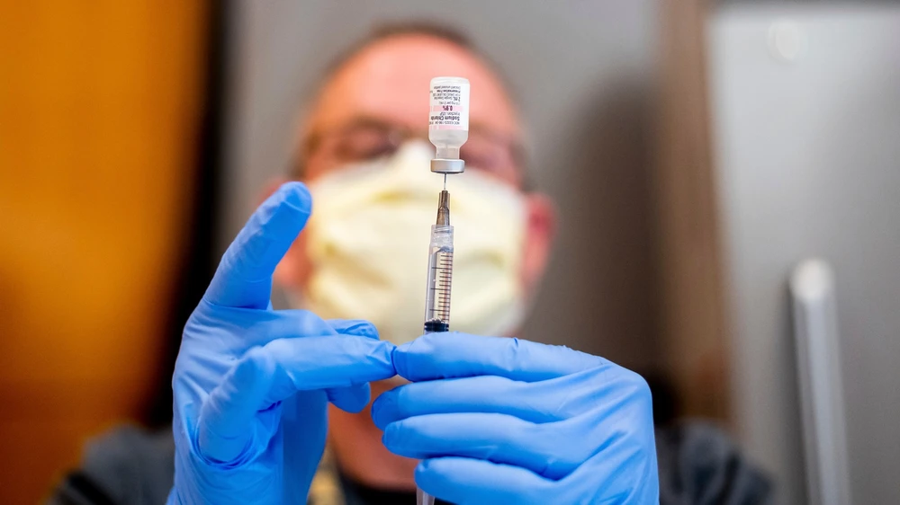 Một nhân viên y tế đang chuẩn bị lấy vaccine ngừa COVID-19 ra khỏi lọ. Ảnh: AP