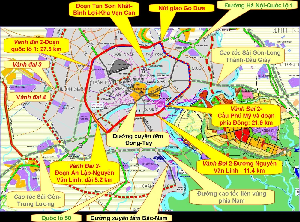 Theo đại diện Sở QH-KT, trên nền phát triển không gian đô thị tập trung ở trung tâm cũ, TP sẽ phát triển ra đa cực về bốn hướng. Hiện TP đang tập trung vào việc khép kín vành đai 2 và chuẩn bị cho việc mở rộng vành đai 3 và 4 ra các đô thị vệ tinh...