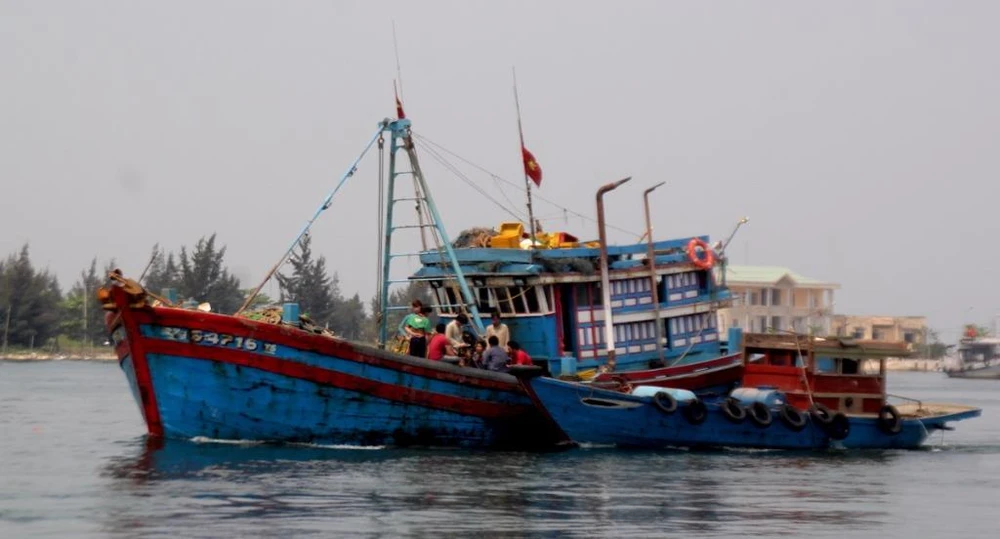 Tàu cá của ngư dân trên đường vào neo đậu tại cảng cá Thọ Quang. Ảnh: SƠN TRÀ.