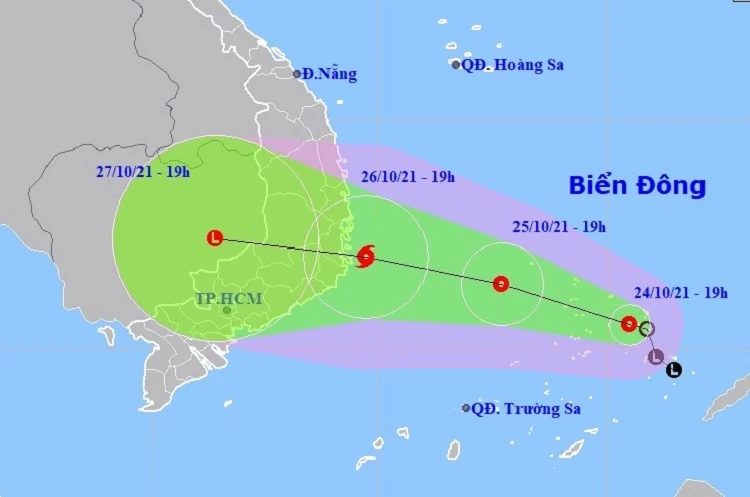 Dự báo trong 24 giờ tới, áp thấp nhiệt đới di chuyển chủ yếu theo hướng Tây Tây Bắc, mỗi giờ đi được khoảng 15 km và có khả năng mạnh lên thành bão. Đến 1 giờ ngày 26-10, vị trí tâm bão trên vùng biển phía Tây Bắc quần đảo Trường Sa. Sức gió mạnh nhất vùng gần tâm bão mạnh cấp 8 (60-75 km/giờ), giật cấp 10.
