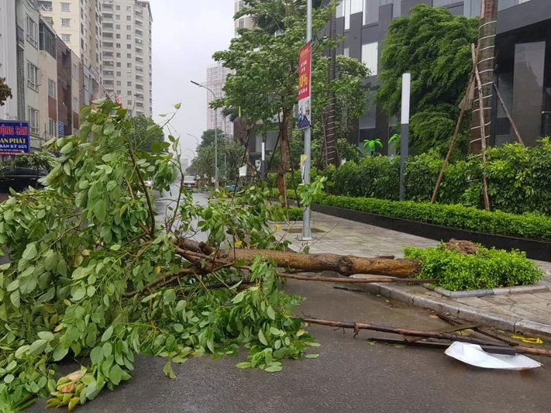 Cây xanh bị ngã đổ trong bão số 3-2019 tại Hà Nội. Ảnh: AH