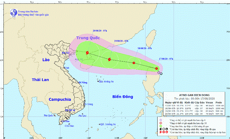 Vào 7h sáng nay (17-8), tâm áp thấp nhiệt đới (ATNĐ) ở trên khu vực phía bắc đảo Lu-dông (Philippines) với sức gió mạnh cấp 6, giật cấp 8.