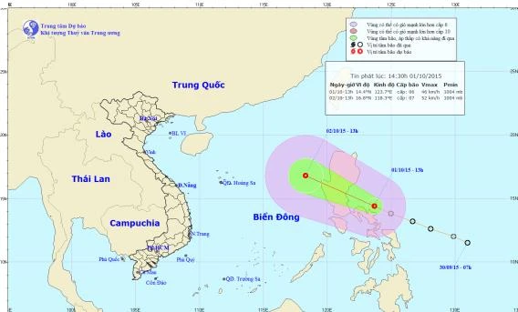 Chiều 1-10, Trung tâm Khí tượng Thủy văn Quốc gia cho biết vào lúc 13 giờ chiều nay 1-10, vị trí tâm áp thấp nhiệt đới ở vào khoảng 14,4 độ vĩ Bắc; 123,7 độ kinh Đông, trên vùng biển phía đông miền Trung Philippines. Sức gió mạnh nhất ở vùng gần tâm áp thấp nhiệt đới mạnh cấp 6-7 (tức là 40-60 km/giờ), giật cấp 8-9.