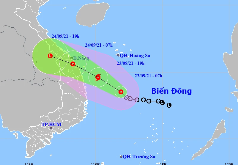 Theo Trung tâm Dự báo Khí tượng thủy văn quốc gia (Trung tâm KTTVQG), lúc 7 giờ ngày 23-9, vị trí tâm áp thấp nhiệt đới (ATNĐ) ở vào khoảng 13,5 độ Vĩ Bắc; 111,9 độ Kinh Đông.