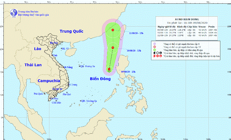 Cụ thể, vào 13h chiều nay (9-8), tâm ATNĐ cách đảo Lu-dông (Philippines) 200km về phía tây. Cường độ ATNĐ mạnh cấp 6, giật cấp 8.