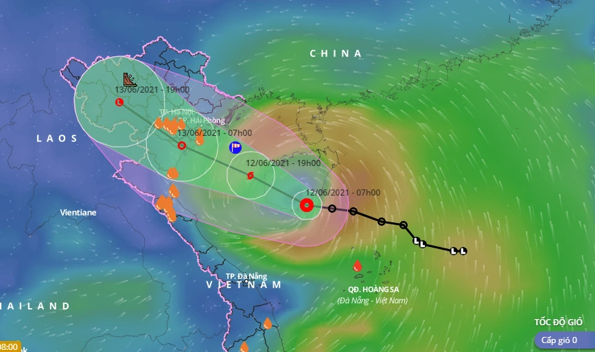 Đến 19 giờ tối nay, vị trí tâm bão ở khoảng 19,3 độ Vĩ Bắc; 108,2 độ Kinh Đông, cách huyện đảo Bạch Long Vĩ khoảng 120 km về phía đông nam. Sức gió mạnh nhất vùng gần tâm bão mạnh cấp 8 (60-75 km/giờ), giật cấp 10.