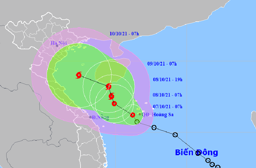 Theo Trung tâm Dự báo khí tượng thủy văn quốc gia, lúc 7 giờ ngày 7-10, vị trí tâm áp thấp nhiệt đới ở vào khoảng 16,2 độ Vĩ Bắc; 111,2 độ Kinh Đông, ngay trên vùng biển phía Tây quần đảo Hoàng Sa.