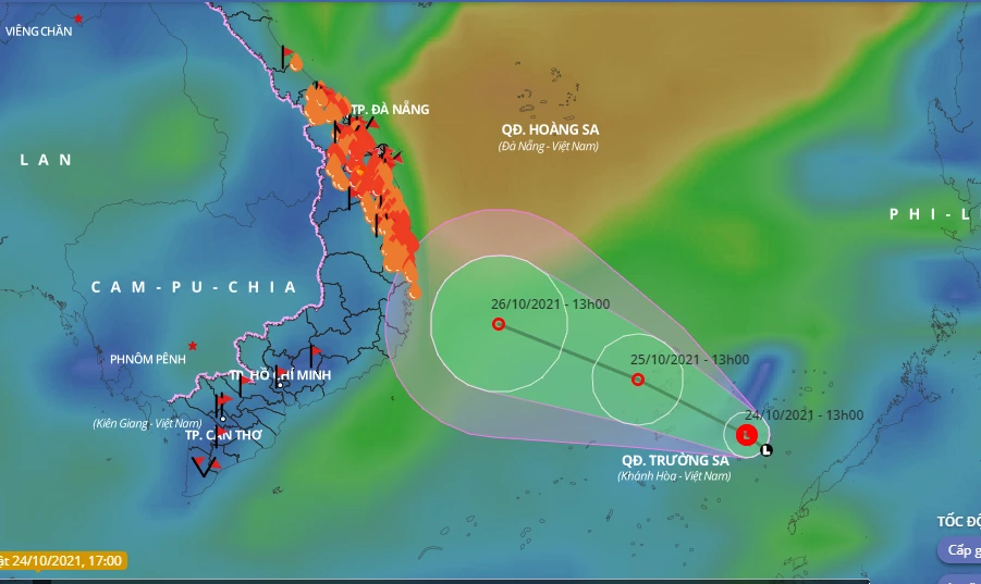 Theo Trung tâm Dự báo Khí tượng thủy văn quốc gia (Trung tâm KTTVQG), Biển Đông đã xuất hiện một vùng áp thấp. Đến chiều ngày 24-10, vùng áp thấp đã mạnh lên thành áp thấp nhiệt đới (ATNĐ).