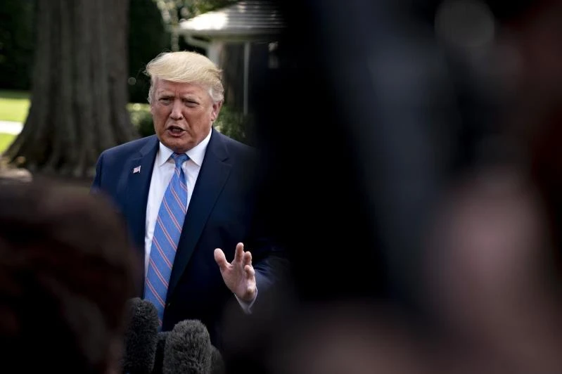 Ông Trump nói chuyện với phóng viên. Ảnh: Bloomberg