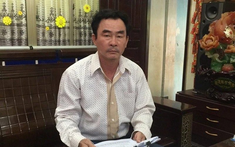 Ông Lâm Ngọc Đường bên xấp hồ sơ khiếu nại về việc phải nộp khoản tiền sử dụng đất gấp ba lần so với quy định. Ảnh: VIỆT HOA