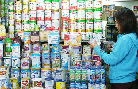 Chị Nguyễn Thị H. (Tân Bình) đang chọn mua sữa ở một cửa hàng không vui mấy khi hộp Dielac Alpha 123 loại 900 g có giá cao hơn giá trần bán lẻ tối đa khoảng 2.000-3.000 đồng.