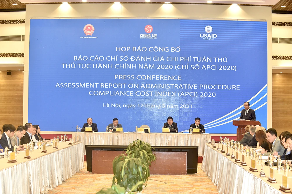 Sáng 17-3, Hội đồng tư vấn cải cách thủ tục hành chính (TTHC) của Thủ tướng Chính phủ tổ chức Họp báo công bố Báo cáo Chỉ số đánh giá chi phí tuân thủ TTHC năm 2020 (APCI 2020).