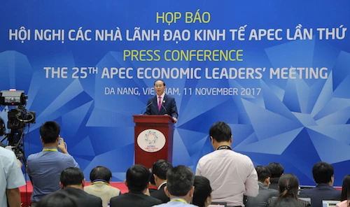 Chủ tịch nước cũng đã gửi lời cảm ơn đến các hãng thông tấn và nhà báo trong nước, quốc tế thời gian qua đã đến TP Đà Nẵng đưa tin về Tuần lễ cấp cao APEC 2017. Ảnh: LÊ PHI
