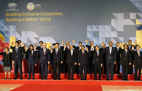 Chủ tịch nước Trương Tấn Sang chụp ảnh chung với lãnh đạo các nền kinh tế APEC tại lễ khai mạc. Ảnh: TTXVN