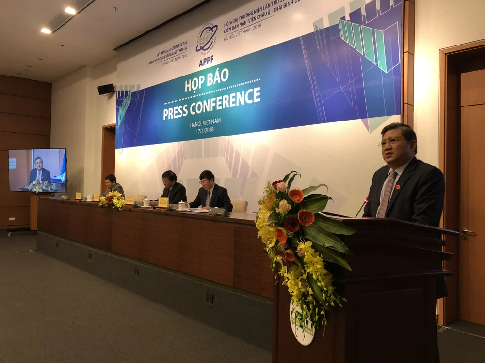 Chiều 17-1, Quốc hội đã tổ chức họp báo công bố thông tin về Hội nghị thường niên lần thứ 26 của Diễn đàn liên nghị viện châu Á-Thái Bình Dương (APPF 26).