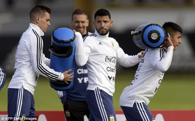 Ngôi sao của Man City, Aguero trong buổi tập luyện cùng đội tuyển Argentina.