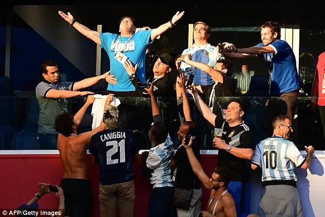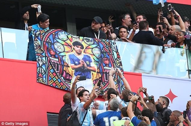 Hình ảnh của Maradona trên khán đài VIP sân Saint Petersburg: