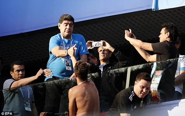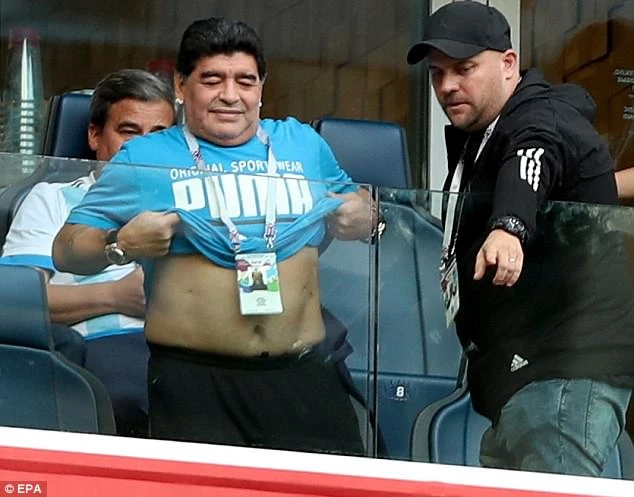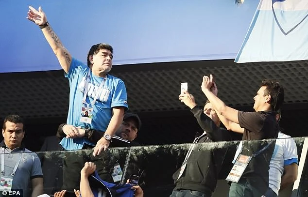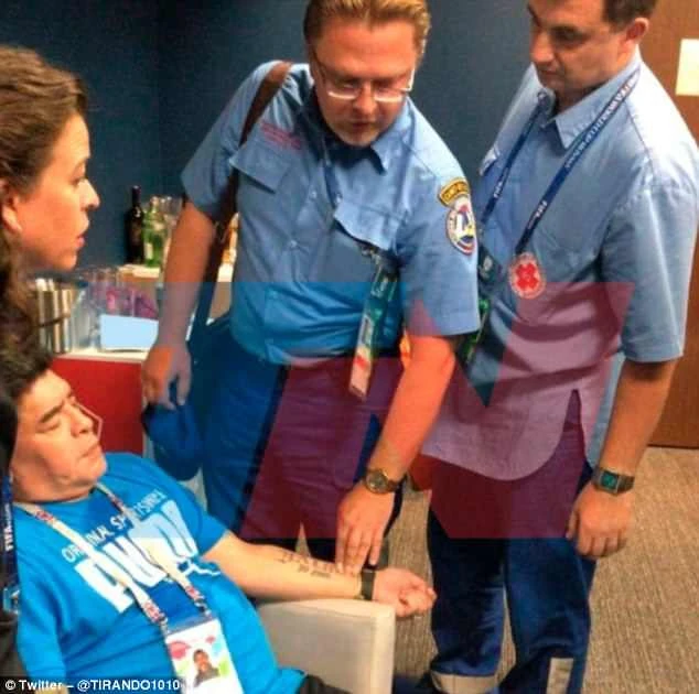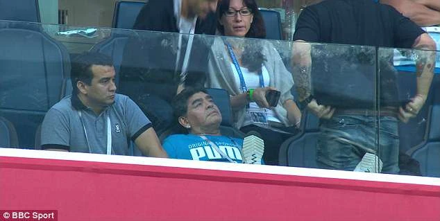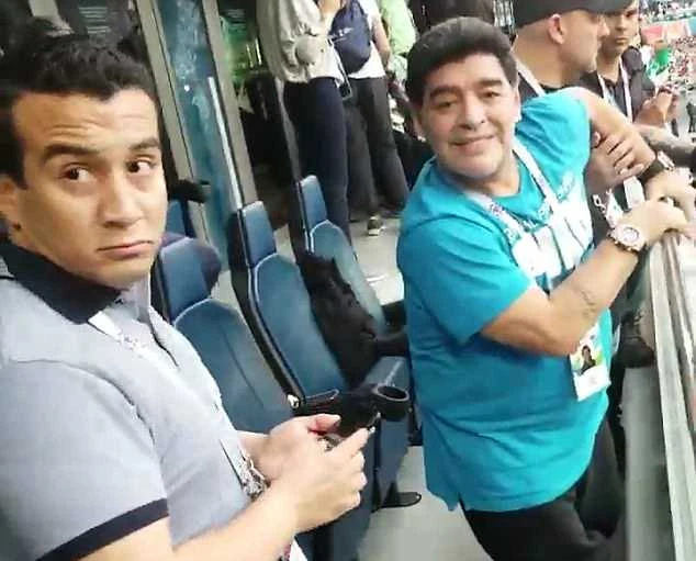 Chưa hết, rất nhiều hình ảnh cùng video xuất hiện trên các phương tiện truyền thông sau trận đấu cho thấy, có thời điểm Maradona lã người đi. Hình ảnh cho thấy Maradona không thể đứng vững trên đôi chân của mình nữa mà phải nhờ nhân viên y tế dìu vào khu vực VIP sân Saint Petersburg chăm sóc.