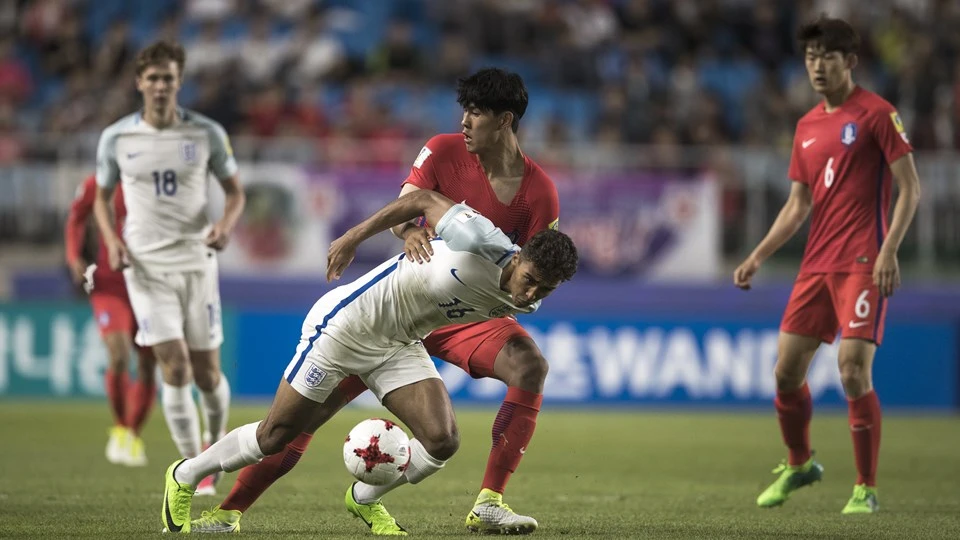 Chủ nhà Hàn Quốc (đỏ) chơi có tính chất giữ chân trong trận gặp Anh này
