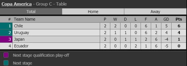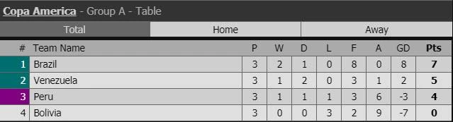 Bảng xếp hạng 3 bảng đấu Copa America: