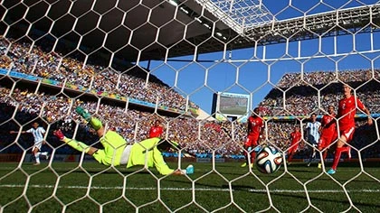 Đầu hiệp 2, Higuain có pha đánh đầu cận thành rất căng nhưng thủ thành Benaglio đã xuất sắc từ chối cơ hội của người Argentina. Ảnh: FIFA.com