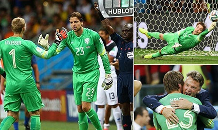 Nếu như Argentina sớm có bàn thắng vào lưới Bỉ và nhọc nhằn bảo vệ tỉ số thì Hà Lan sau 120 phút không thể ghi bàn đã buộc Costa Rica dừng cuộc chơi nhờ một thủ môn vào sân ở phút… 120.